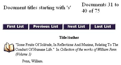 you click the "S" button, you will get a list ten at a time of 75 works that