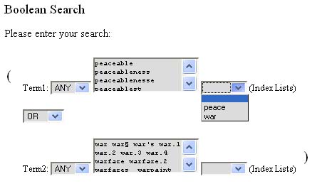 Example: Enter peace war and choose a proximity of 5 words. Here